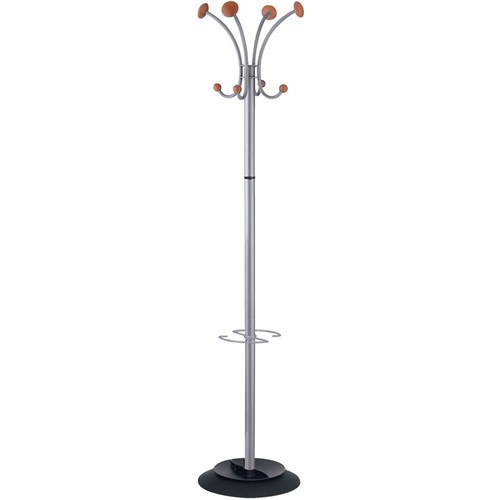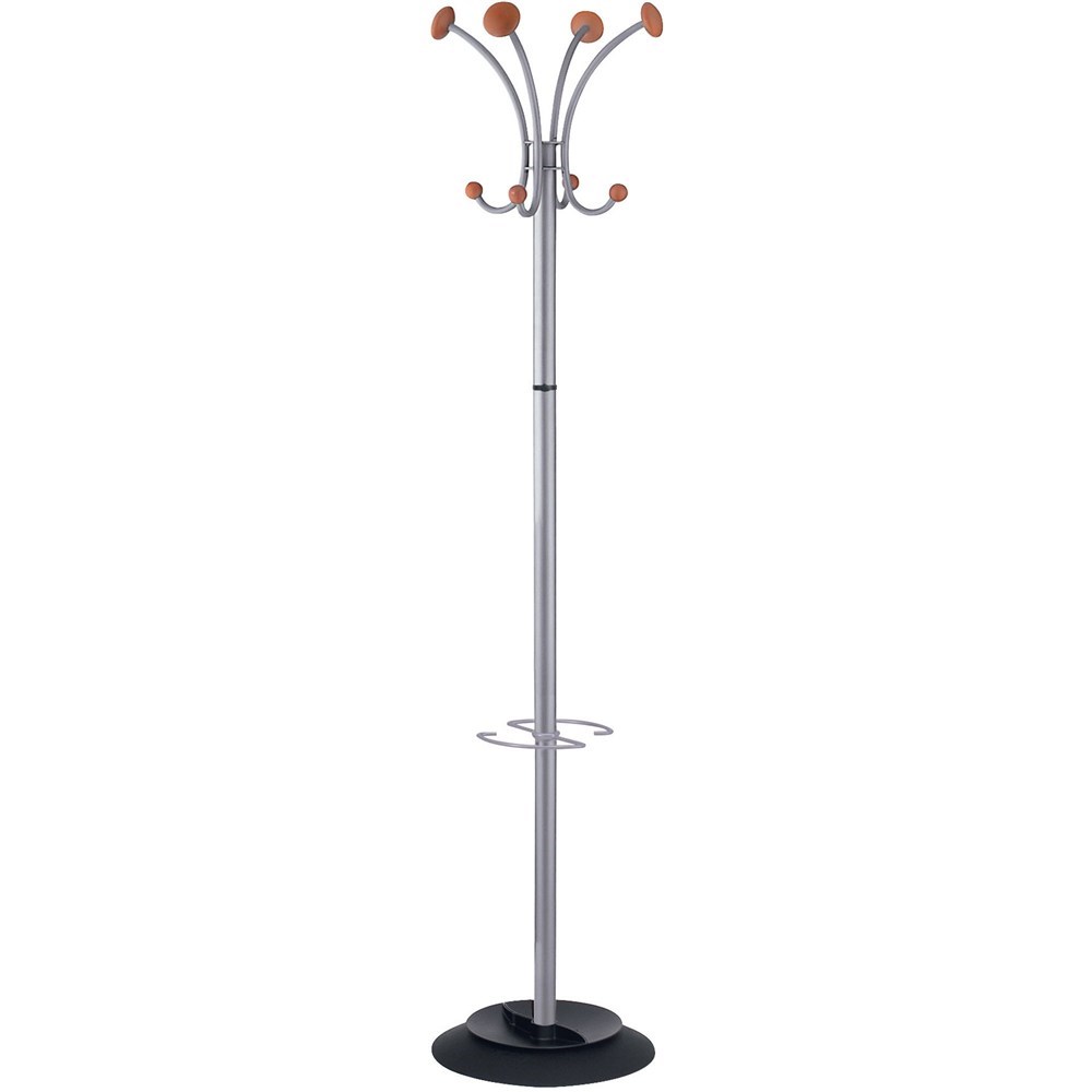 Alba Stily Coat Rack 8 Hook Silver Metal Stand With Wooden Hook Knobs
