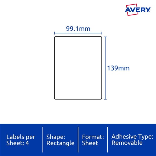 Avery Identification Removable Heavy Duty Laser White L4774 99.1x139mm 4UP 80 Labels