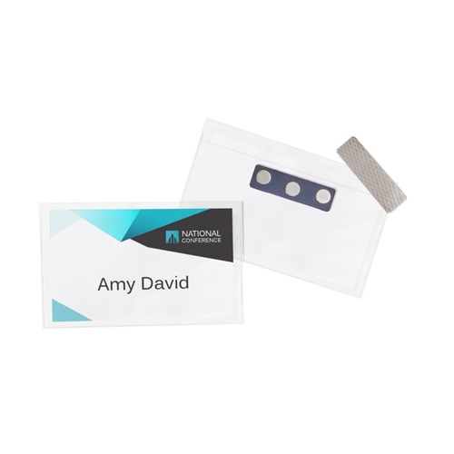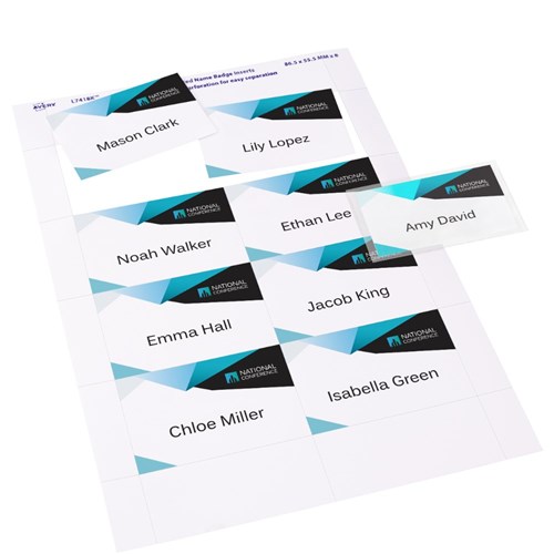 • Kit contains 10 reusable magnetic badge holders, 2 sheets of 150gsm printable insert cards, each with 8 perforated name badges.