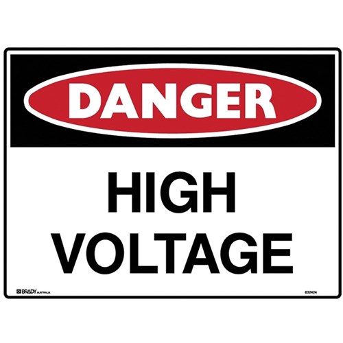 Brady Danger Sign High Voltage 600W x 450mmH Metal White/Red/Black
