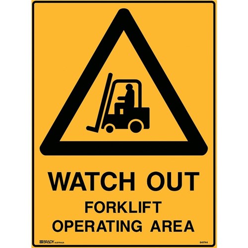 Brady Warning Safety Sign Watch Out Forklift Operating 450W x 600mmH Poly Yellow/Blk