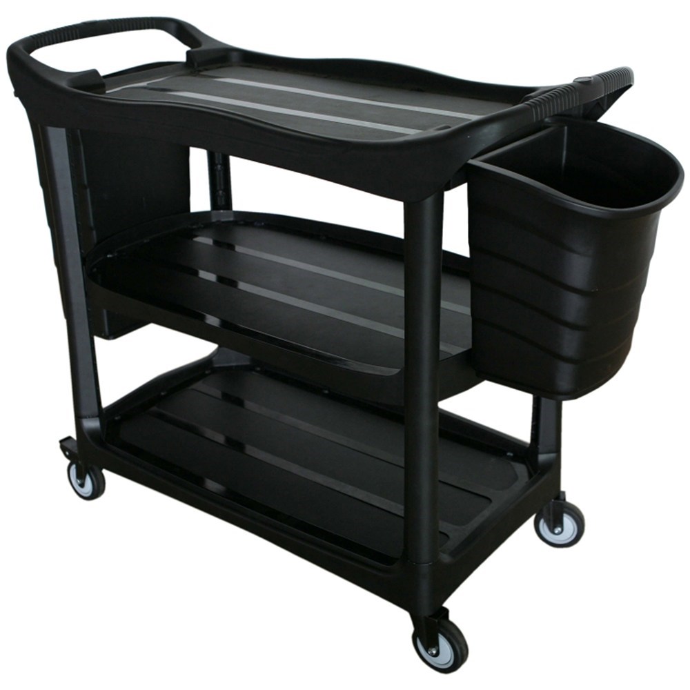 Cleanlink Utility Trolley 3-Tier Trolley With Two Buckets Black