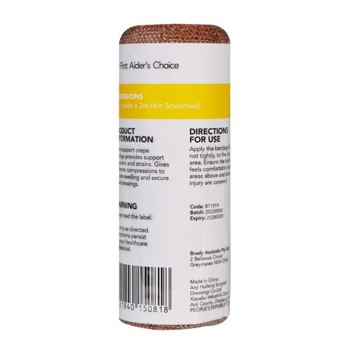 First Aider's Choice Heavy Support Crepe Bandage 10cm Wide Tan