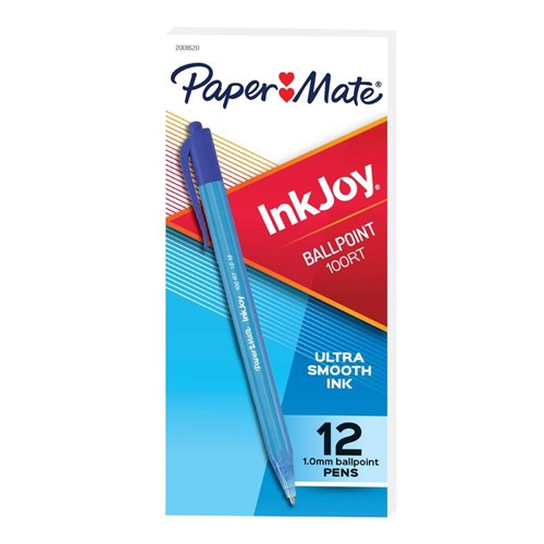 Paper Mate 100RT InkJoy Ballpoint Retractable Pens Medium 1mm Blue Box Of 12