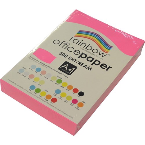 Rainbow Office Copy Paper A4 75gsm Fluoro Pink Ream of 500