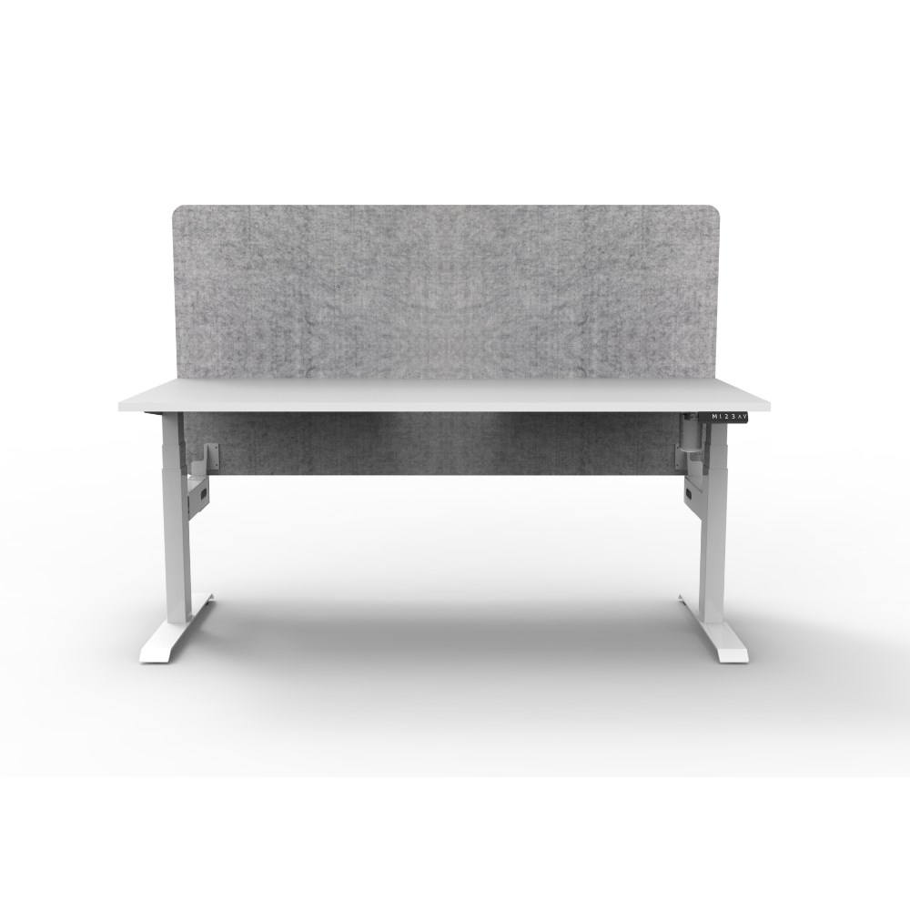 • Electric height adjustable single sided workstation with Natural White top and White Satin frame, Grey Eco screen.
