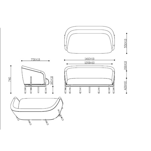 Rapidline Cosmos Lounge Chair 2 Seater 1420W x 760D x 750mmH Rust Fabric