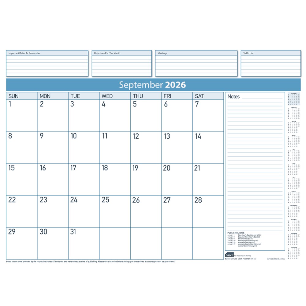 Sasco Deluxe Desk Planner Refill 510 x 440mm Month To View White